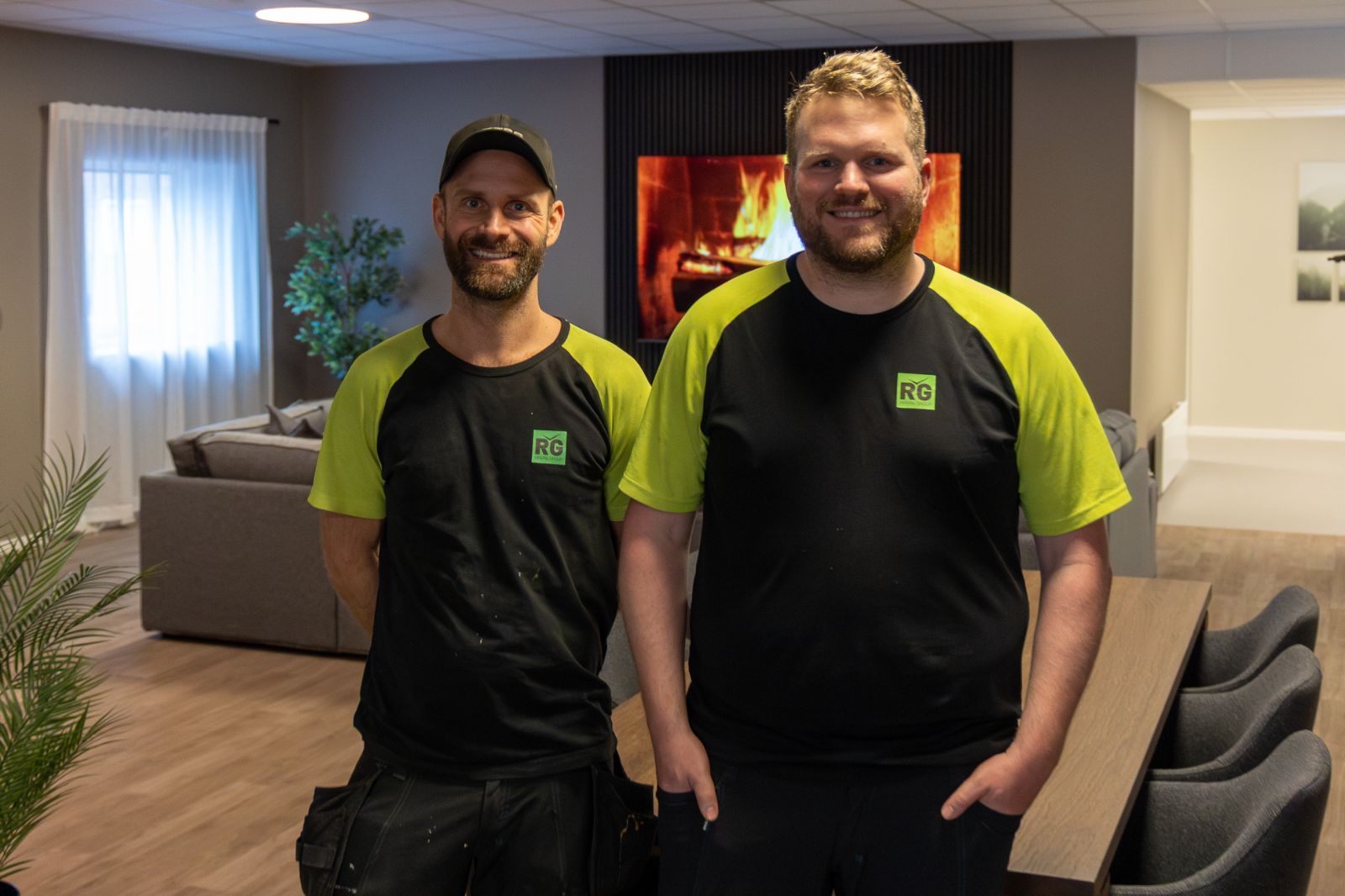 Skadereparatør Tommy A. Store fra Eidsvoll og formann sveis Thomas Greva fra Drangedal gleder seg til å bli blant de første som flytter inn i RG Home.