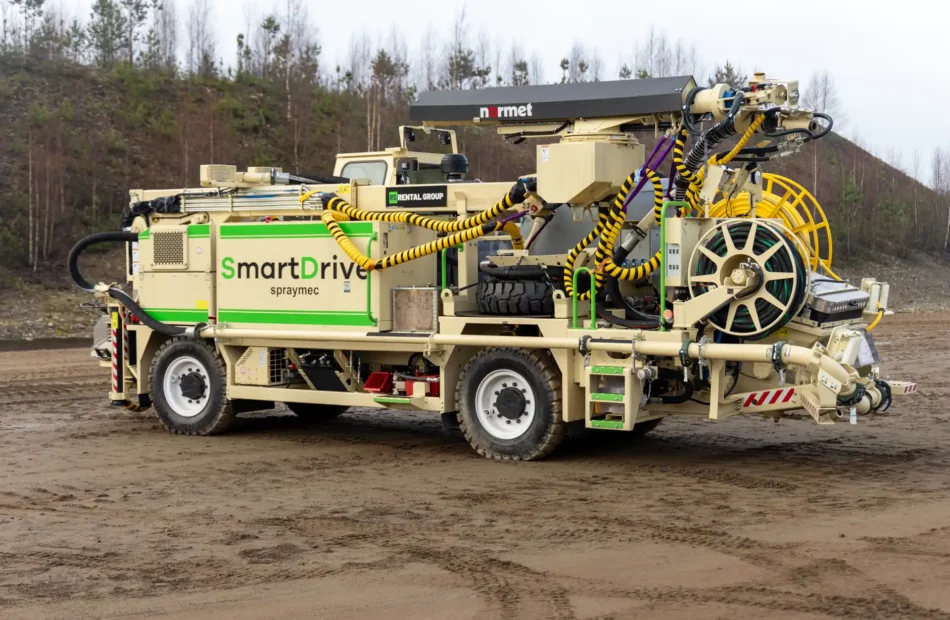 Normet Spraymec 8100 VC SD er en batterielektrisk betongsprøyterobot utviklet for store tunnelprofiler. Maskinen er laget for presis sprøyting i tunnel og inngår naturlig i prosjekter med strenge krav til luftkvalitet og utslipp.